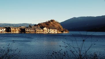 第一大天然淡水湖,被譽為“高原明珠”。湖的西北面,雄偉壯麗的格姆山巍然矗立,這即是摩梭人人為之崇拜而人格化的格姆女神。湖的東南面,與草海連接,這里牧草豐盛,牛羊肥美,淺海處茂密的蘆葦隨風蕩漾,蔟蔟的花草迎風招展,每到冬季,天鵝、黑頸鶴等珍稀候鳥數(shù)以萬計棲息于此,平添一種生氣,一種景致。